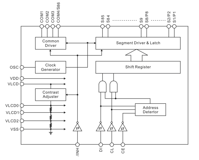 ●· Switching between 1/2 bias and 1/3 bias drive techniques under serial data control.