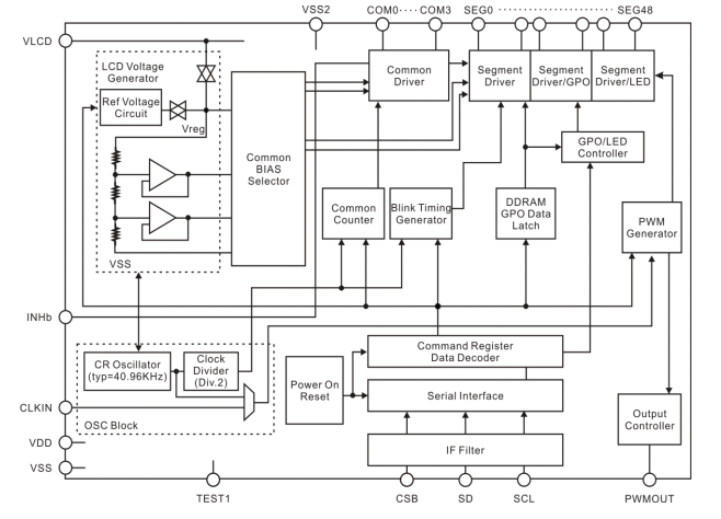 ● Support separate power supply for Logic (VDD) and LCD (VLCD)