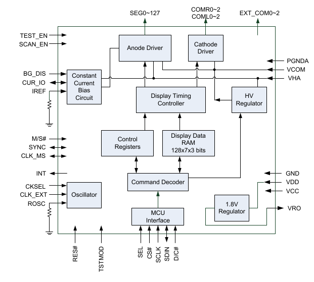 ● Segment output current: 600uA(Typical), 900μA(Max)