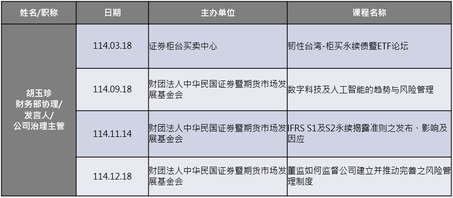 (五)不定期提供董事相关进修资讯,提醒依「上市上柜公司董事、监察人进修推行要点」规范之规定时数进修并完成相关申报。